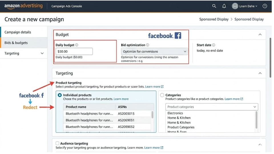 Setting up your first Sponsored Display campaign takes less time than most sellers expect. Log into the Amazon Ads Console, click Create Campaign, and select Sponsored Display. Name your campaign clearly — something like “SD | Views Remarketing | Neem Face Wash” — so you can identify it later. Set your daily budget between ₹500 and ₹800 to start. For bid optimisation, choose “Optimise for Conversions” — this tells Amazon to show your ads to shoppers most likely to purchase, the safest starting point for beginners.