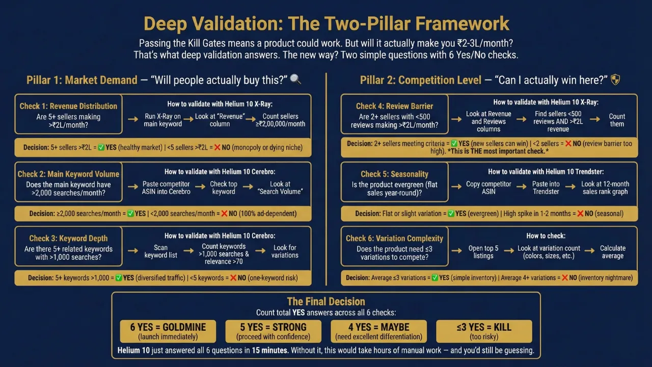 • The 2-Pillar Deep Validation (6 Yes/No checks)
