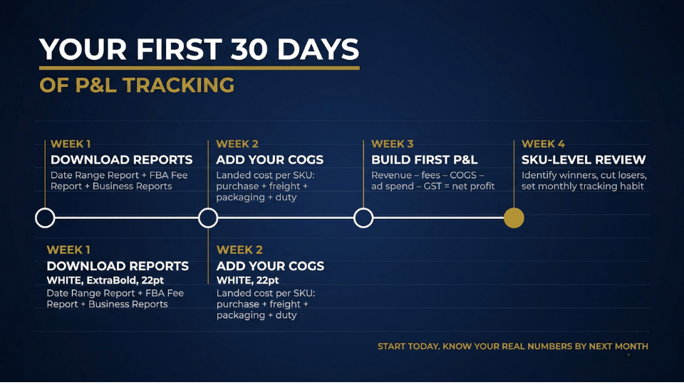 If building your first P&L feels overwhelming, start with a simple tracker that lists revenue, Amazon fees, COGS, and ad spend per month. Even a basic spreadsheet will reveal patterns you have never noticed before.