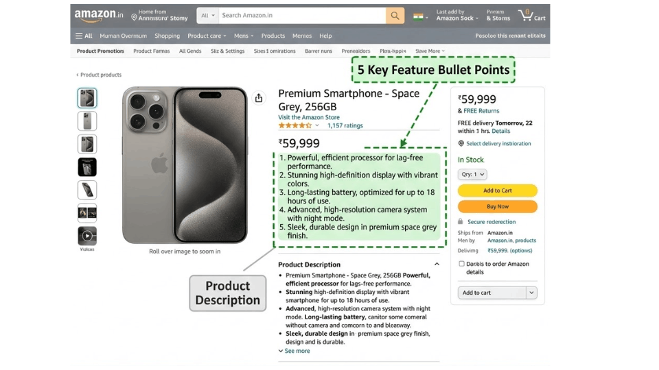 Over 60% of Amazon shoppers in India browse on their phones. On mobile, only 70 to 80 characters are visible per bullet without tapping “see more,” and just three bullets display above the fold. Vikram Desai from Bengaluru was writing 400-character bullets packed with details. When he trimmed them to 180 characters and front-loaded benefits, his mobile conversion increased by 18%. If your most important information is buried in the second half of a long bullet, most mobile shoppers will never see it.