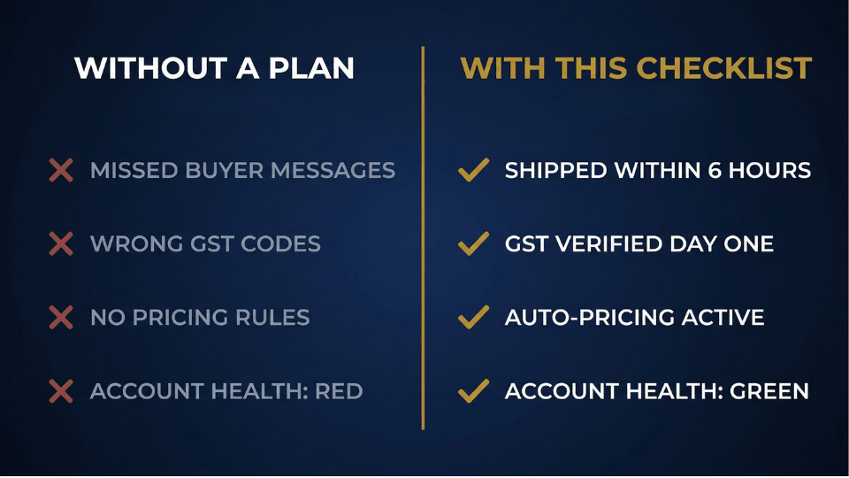 Most sellers celebrate and then freeze. What happens after your first sale on Amazon is more important than the sale itself, because the habits you build in week one shape your account for months. This post gives you a day-by-day Amazon seller first week checklist so you never repeat Deepa's mistake.